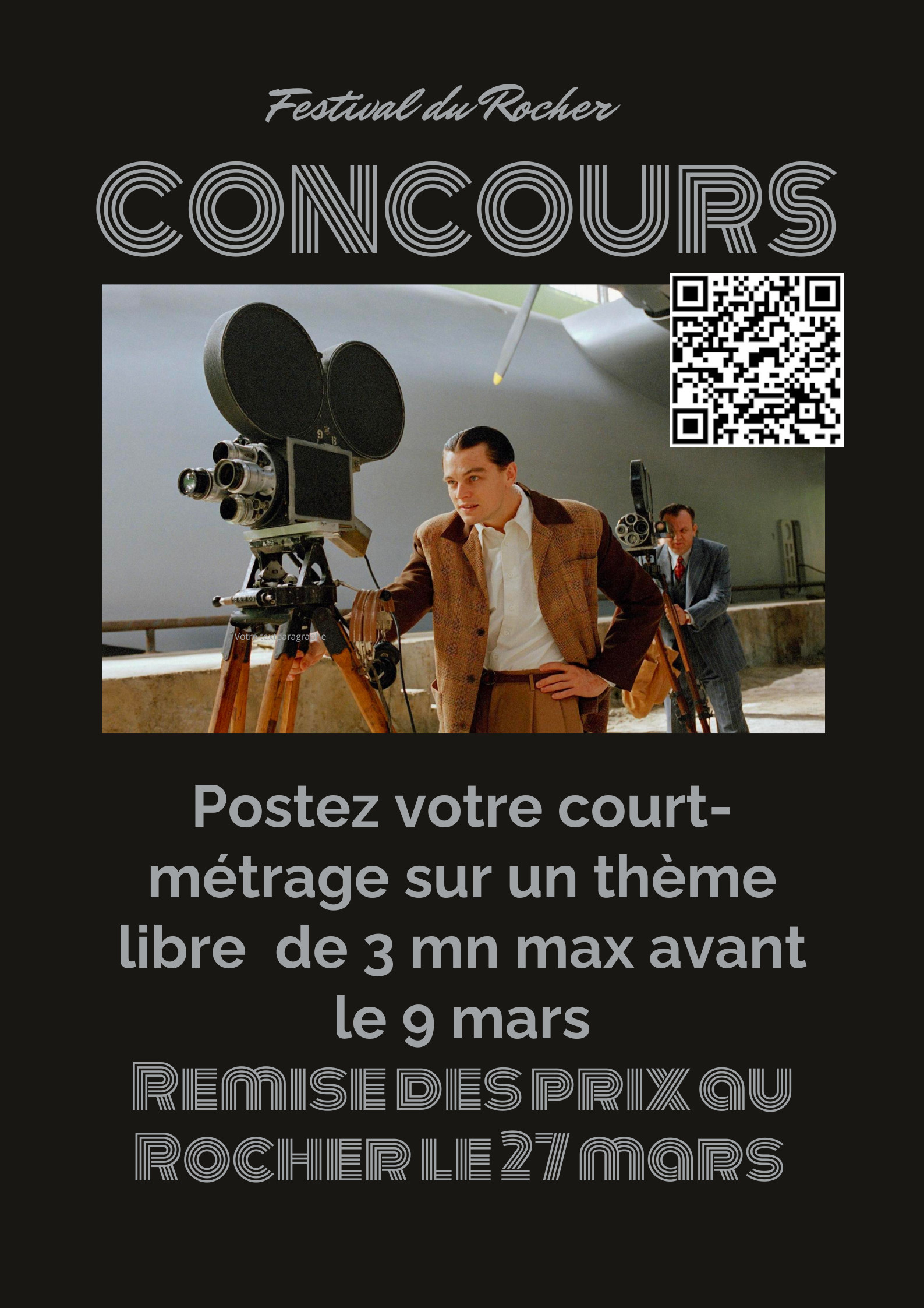 Postez votre court-métrage du 3 mns maximum ici avant le lundi 9 mars et vous serez peut-être sélectionné. e pour être le lauréat ou la lauréate de la compétition de films d’élèves du Coudon qui aura lieu le vendredi 27 mars au cinéma Le Rocher.
